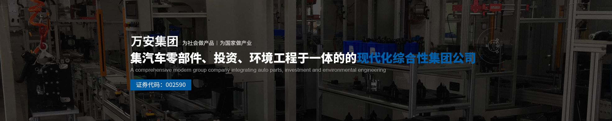 萬安集團始創(chuàng)1985年,經(jīng)過近40年的發(fā)展,現(xiàn)已成長為一家以汽車核心零部件研發(fā)制造為主,集環(huán)境工程、投資等產(chǎn)業(yè)于一體的現(xiàn)代化大型企業(yè)集團。2011年6月10日,旗下浙江萬安科技股份有限公司成功登陸深交所(股票代碼 002590)。2015年4月7日,安徽萬安環(huán)境科技股份有限公司成功登陸新三板(股票代碼 832254)。集團在浙江、北京、上海、安徽、布達佩斯設有五大研發(fā)中心,在美國、英國、瑞典、以色列有合資或合作項目,并在上海、浙江、安徽、吉林、陜西、廣西、山東等多地設有子公司和制造基地。